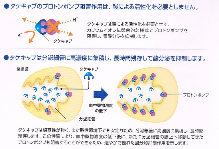 酸に安定、またPPIとの結合が共有結合でなく、イオン結合なので外れやすいとういうのも、持続性について有利らしい。特徴は、